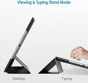 マグネット内蔵、オートスリープとオートウェイクアップ機能が付きます。三つ折りフロントカバーにより、視聴とタイピングに合わせた2通りのスタンド角度を調整できます。スタンドが正しく機能していることを確認するために、折り目の正しい向きを確認してください