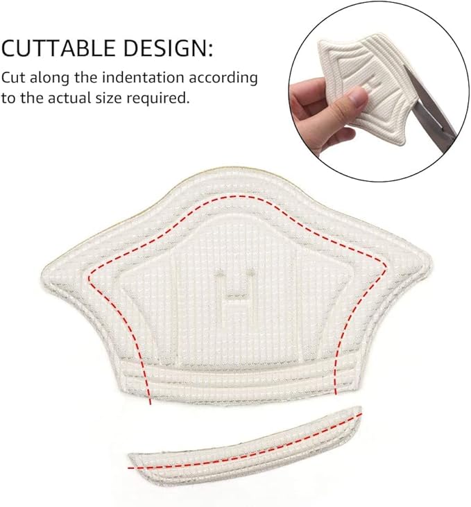 【使用簡単】靴の中の汚れを落とし、接着面の剥離シートを剥します。取り付け位置を定め、本品を張りつけています。このかかとパットは、実際に必要なサイズに合わせて切断できます。かかとにもっとフィットさせます。初心者の方でも手軽に使用できます。