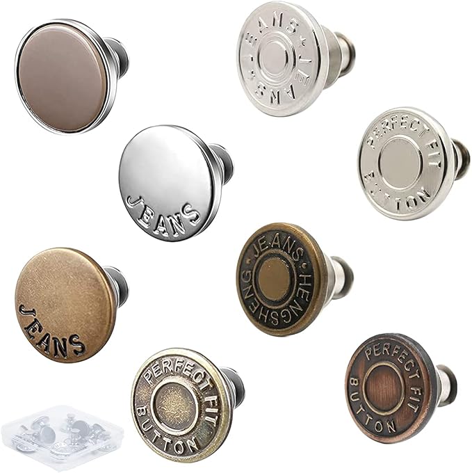 限定商品 ジーンズにぴったりのボタンピン、 取り外し可能および ジャンボタンピン縫いなし、 調節可能な金属ボタン、パンツのウエスト増減可能、ジャケット ズボン置換 ボタン便利な収納ケース付き(1セット8個)