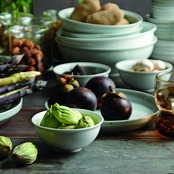 食卓に登場するどんなメニューにも対応できるオールマイティな形状とサイズ展開で、使い勝手がよく料理を引き立てる。