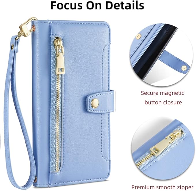 Xiaomi Redmi Note 11 pro 5G ケース 手帳型 ショルダー 【 ストラップ 長+短 2本】 redminote11pro ショルダーケース カバー レッドミ ノート11 プロ 手帳 スマホケース 適用 case 【BonwFzin】 ストラップホール付き カード収納 バッグ マグネット スナップ 肩がけ 首掛け 斜め掛け ファスナー 耐衝撃 スタンド 浅い藍 ライトブルー