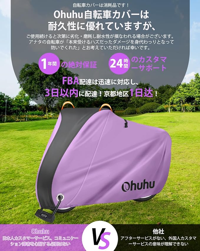 Ohuhu 自転車カバー 防水 厚手 破れにくい 210T 190T雨避け UV加工 防風 盗難防止 29インチまで対応 通常サイズ 収納便利