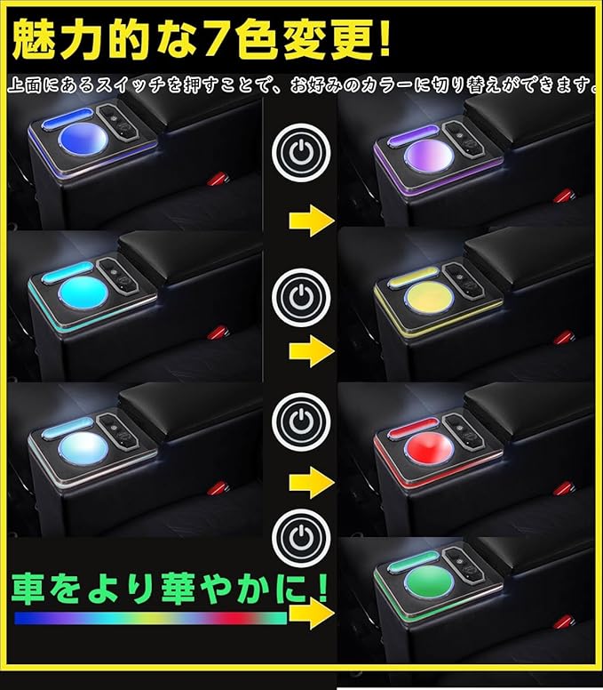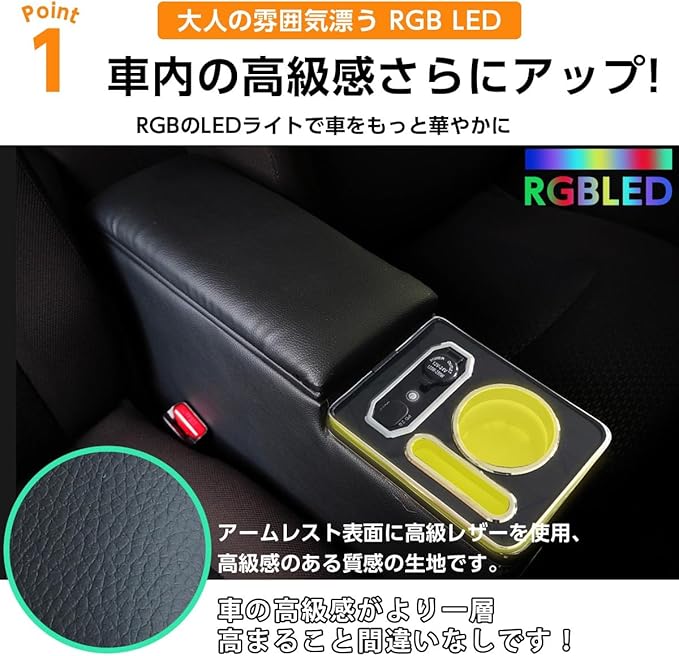 Youabubu ルーミー コンソールボックス 7色 光る LED アームレスト 肘置き 肘掛け ボックス USBポート付き トール タンク ジャスティ― 900系 前後期 小物入れ 取付簡単 多機能