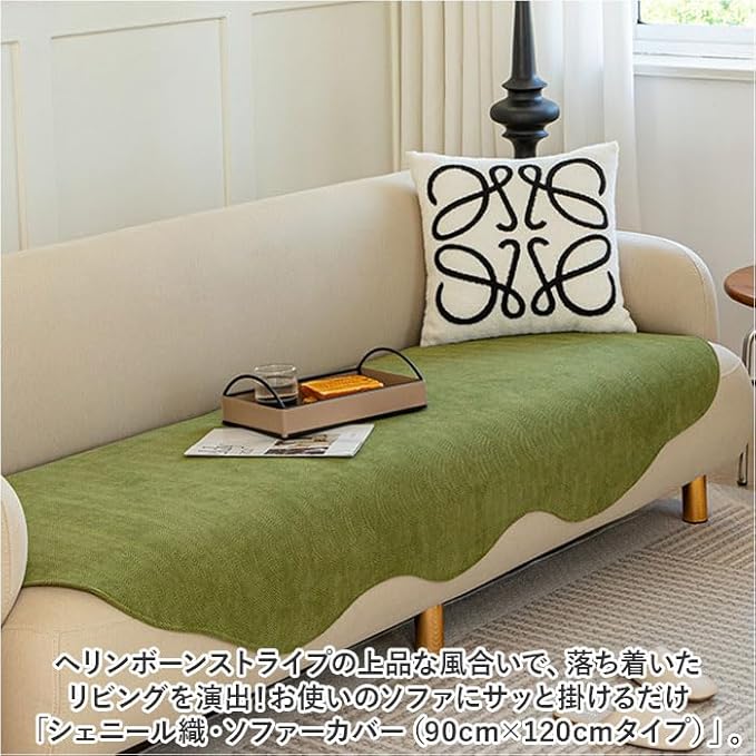 ヘリンボーンストライプの上品な風合いで、落ち着いたリビングを演出!お使いのソファにサッと掛けるだけ「シェニール織・ソファーカバー(90cm 120cmタイプ)」。