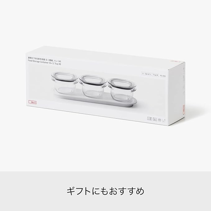 ライクイット (like-it) キッチン収納 プラスチック 密閉 保存容器 Sサイズ3個組 グレー+トレーM ホワイト FC-033 冷凍保存可 食器洗い乾燥機可 TPX容器 電子レンジOK 超軽量