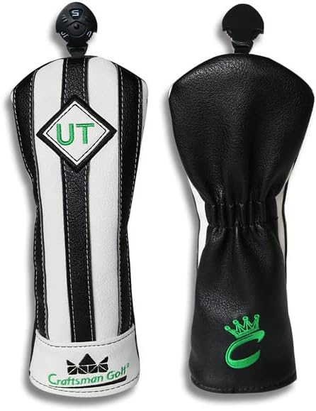 CRAFTSMAN(クラフトマン) ゴルフウッドカバー クラブヘッドカバー 4個セット(1.3.5.UT) ドライバー用・フェアウェイウッド用・ユーティリティー用(番号タグ付き) 着脱スムーズ メンズ たて縞黒白 イタリア風 ユベントスファン向け