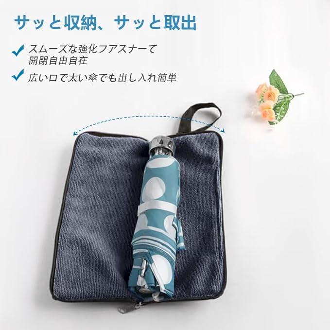 この吸水傘カバーは、長さ34cm以下の傘に対応しています!傘の収納後、このカバーに入れるだけで、スマートに収納できます。また、吸水性のある素材で、傘の表面の水分を素早く吸収し、他の物に水滴がつくのを防ぎます。さらに、傘の内部からの水滴もキャッチして、お部屋を清潔で乾燥させます。オフィス、家庭、旅行先など、さまざまな場面で活躍する吸水傘カバーです。