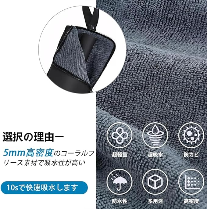 特徴 吸水, 速乾性, 使用簡単, 携帯&収納とても便利, タオルにもなる