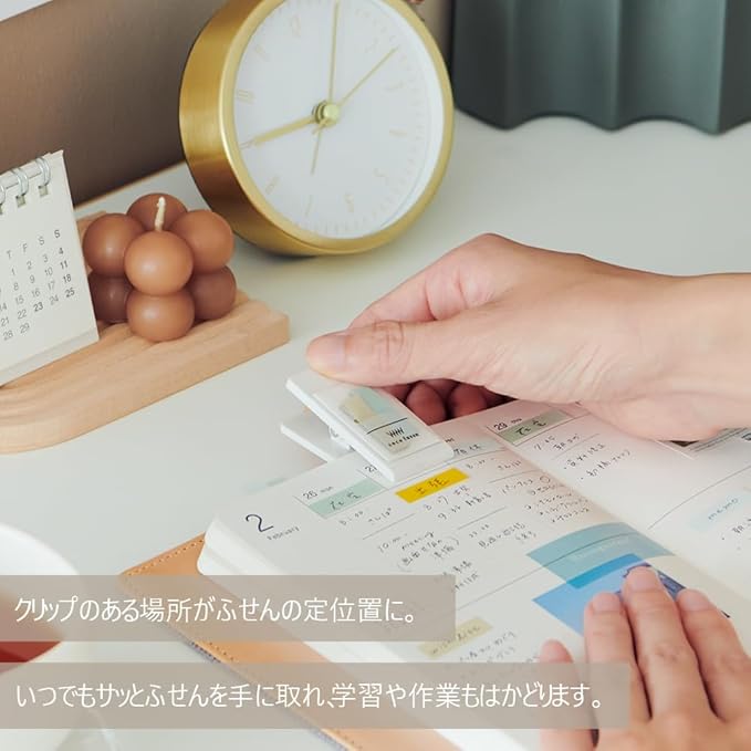 本のページの余白や、手帳の小さめな枠内にもおさまりのよい「ミニサイズのふせん」と、小回りのきく大きさ&すっきりとシンプルなデザインがかわいい「ミニクリップ」がひとつに。