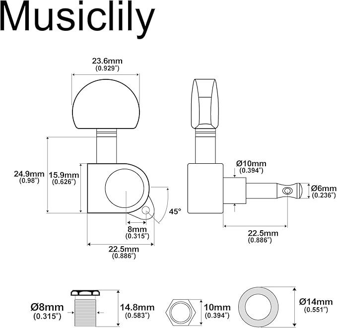 Musiclily Pro 3対3 ギター ペグ エレキギター/アコースティックギター用、ハーフムーンボタンクロム