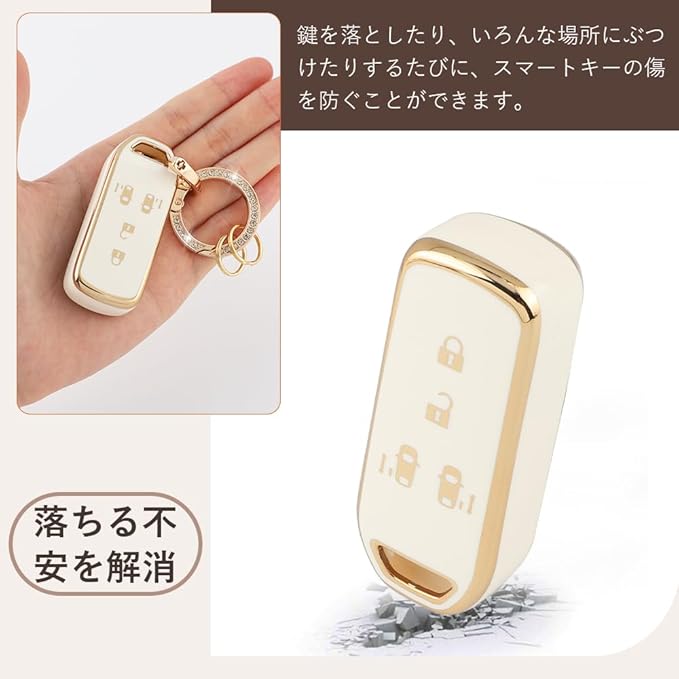 【手触りの柔らかい】ホンダNシリーズ専用キーケースはTPU素材を採用します。滑らかで柔らかい手触りで快適な使用感を実現しています。軽くて簡易な構造はご愛車のキーに新たなイメージチェンジをもたらします。実感があるキーシェルはぎらつくゴールデンラインと相まって、満々ピカピカメタリック感があります。見た目格好が良くて保護には十分で、プレゼントにオススメです。