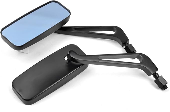 バイクミラー 10mm 8mm 正ネジ 逆ネジ付き アルミ製 ブラック 四角形 ブルーガラス 調整可能 左右セット ホンダ カワサキ 汎用