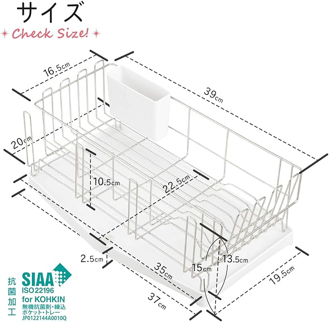 レック(LEC) ステンレス鋼 マルチ 水切りかご (スリム) SIAA抗菌、流れる/流れない選べるトレー、コップ・まな板スタンド付き、大皿対応