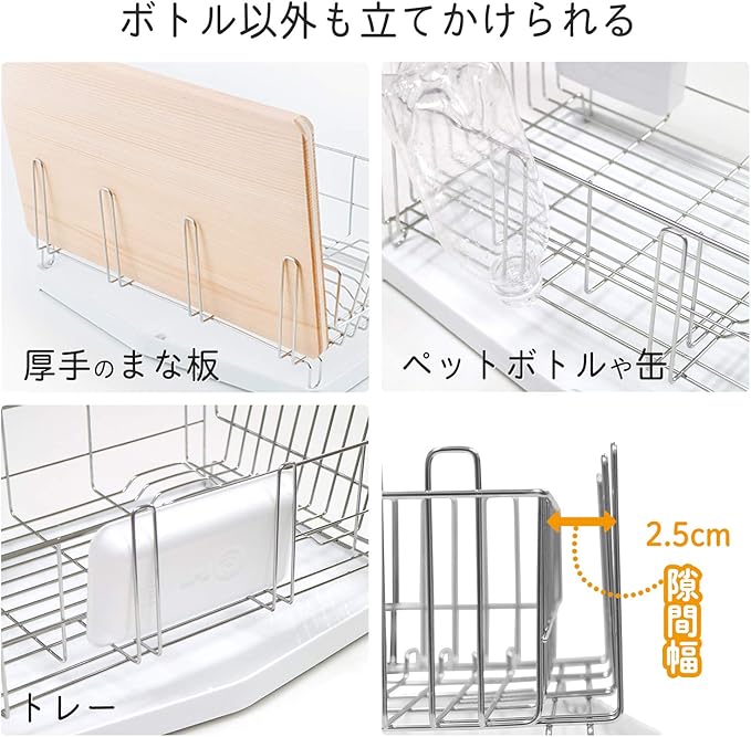 外側スタンドはコップだけでなく、ペットボトルを干したり、まな板立てとしても使えます。