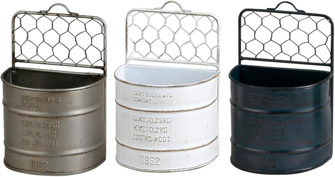 アンティーク加工が施されたブリキのポットカバー 使い古された雰囲気がジャンクガーデンにもピッタリ お部屋で小物いれに使ってもおしゃれ