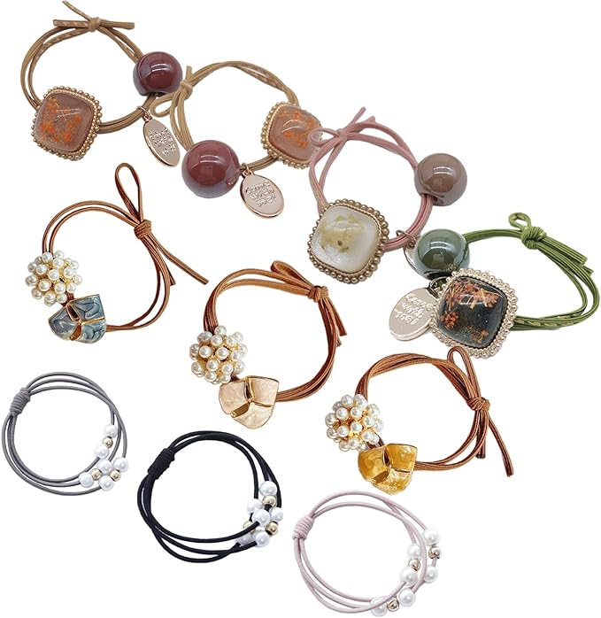 ヘアゴム10点 セット パール ヘアgomuビーズ ヘア飾り 大人 シュシュ ヘアゴム ヘアアクセサリー 上品 カジュアル オフィス 髪留め おしゃれ春 夏 秋 オフィス (Aset)