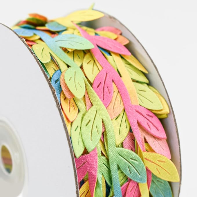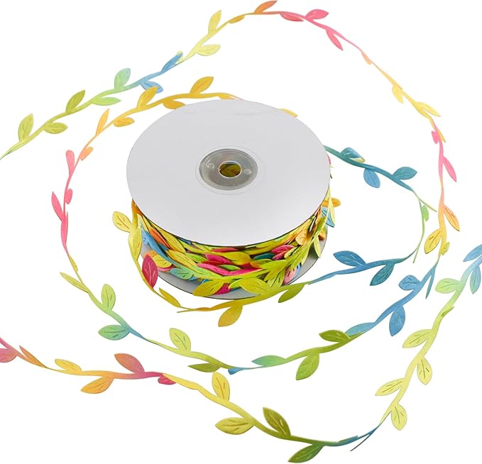Bacucine 葉っぱ リボン グリーンリーフ リボントリム シルク クリスマス つるリボン 飾り 結婚式 パーティー装飾 花輪作り ギフト包装 プレゼント ウェディング ハンドメイド ホーム装飾 インテリア (カラフル, 30m)