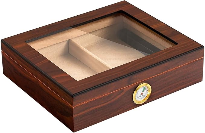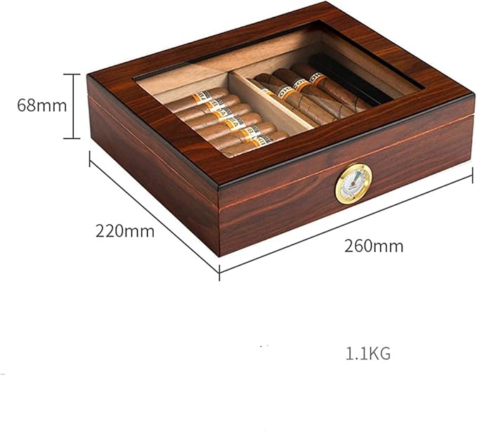 シガーケースはスペイン産杉の木で手作りされており、トップガラスと金メッキのヒンジが付いており、葉巻を新鮮に保つための密閉性が優れています。