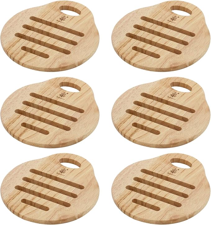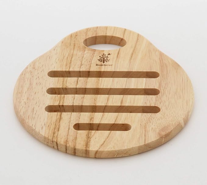 不二貿易(Fujiboeki) 鍋敷き 木製トリベット ペア ボヌール ナチュラル 幅18 奥行16cm 6個セット 22646