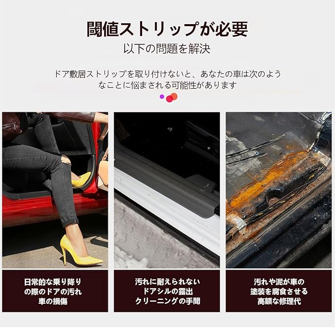 【全車種対応・高い互換性】本サイドステップガードは専用設計で、最新の粘着技術により、強力な固定力を持ち、長期間剥がれる心配がありません。乗降時の擦れやキズからしっかりと保護します。色褪せや剥がれに強く、愛車に華やかさと個性をプラス。見た目も美しく、愛車のドレスアップアイテムとして最適です。