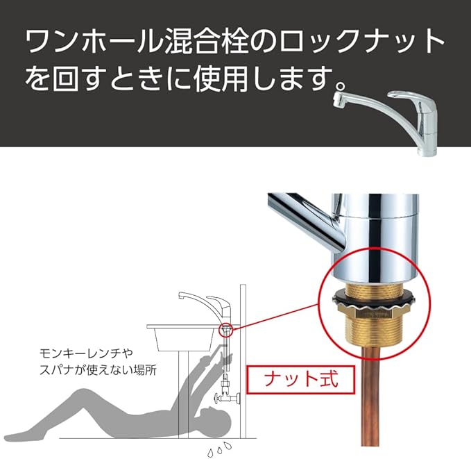 ワンホール混合栓のロックナットをまわすときに使用します。【用途】