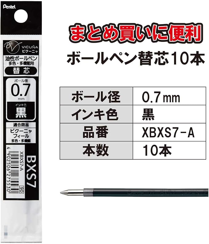 ぺんてる 多機能ボールペン替芯 ビクーニャ 0.7mm XBXS7-A 黒 10本