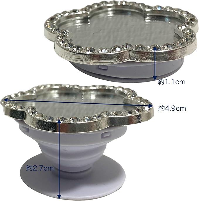 ラインストーン ハート ミラー MagSafe対応 磁力吸着 マグネット 粘着式 両面テープ折りたたみスマホグリップ ソケッツ 韓国 スマホリング リング スタンド グリップトック バンカーリング スマホ 落下防止 携帯リング グリップ(フラワー・シルバー・両面テープ)