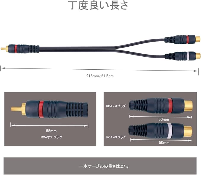 高品質の素材: この rca 分岐 ケーブル はコネクタ端子に金メッキプラグを採用し、耐腐食性が強くて、優れた耐久性がある、安定的な信号伝送を提供する。
