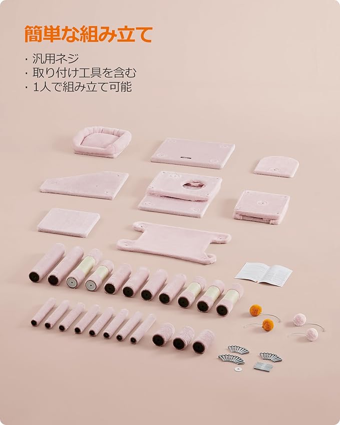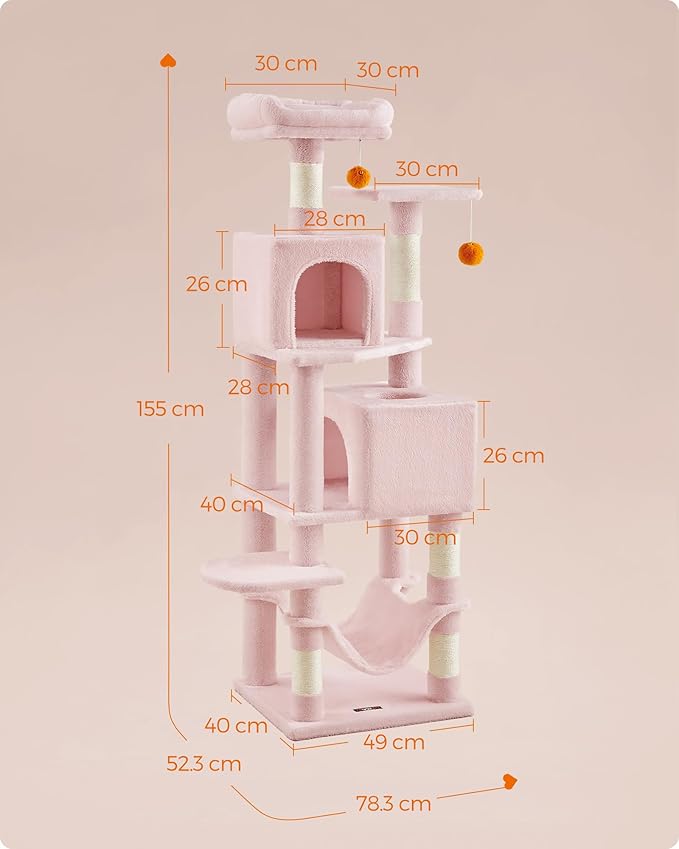 FEANDREA キャットタワー スリム 猫タワー 大型猫 多頭飼い 据え置き 省スペース ハンモック付き 爪とぎ 運動不足解消 高さ155CM ピンクPCT192P01