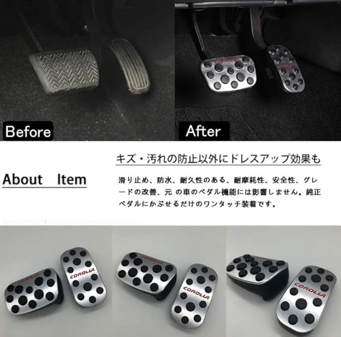 高品質のアルミペダル:この2ピースセットの高品質なアルミペダルで、カローラをグレードアップしましょう。軽量かつ耐久性のあるアルミニウム合金素材を使用し、長く優れたパフォーマンスを提供します。