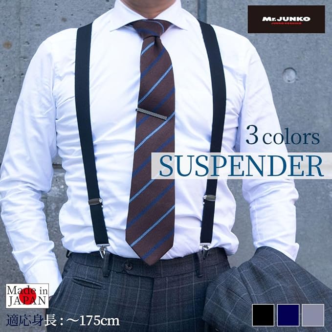 [Mr.JUNKO] サスペンダー メンズ スーツコーディネート フリーサイズ カジュアル フォーマル ビジネス Y型 日本製 ブラック ネイビー グレー 黒 紺 灰