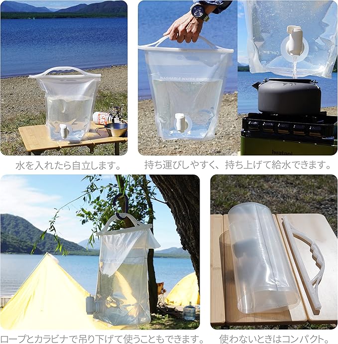 岩谷マテリアル 水タンク ウォッシャブル ウォーターバッグ 5L 透明 WWB-5CL 注ぎやすいコック付き キャンプ レジャー 防災 約37 36 16cm