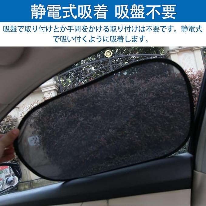 【安全性】このカーサンシェード 車 サイドは日中の強い日差しを抑え、日光による皮膚の損傷から守ります。 同時に車内での女性の日焼け対策、駐車中の防犯・車上荒らし対策や、安全対策、盗難防止、熱中症対策としても使えます。 ご自宅の窓に貼って太陽光を遮ることもできます。
