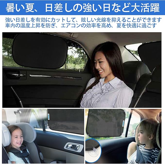 【遮光・断熱・日除け対策に最適】窓日除けは99%以上の有害紫外線をカットし、後部座席の光を遮断することで、車内の温度を効果的に下げます。視界を遮ることなく太陽光をカットします。直射日光を防ぎ、赤ちゃん、子供、ペットを有害紫外線、太陽光眩暈、高温から保護する。