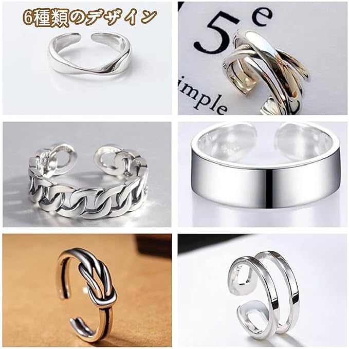 [限定商品] 指輪 6個入り リング アクセサリー ファッションリング メンズ レディース 人気 セット 調節可能 おしゃれ シンプル シルバー