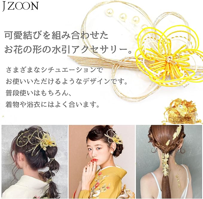 [JZOON] 髪飾り 成人式 水引 金箔 銀箔 組紐 人気 ロープ ゴールド シルバー ヘアアクセサリー 前撮り 振袖 卒業式 結婚式 和装 袴 着物 浴衣に ブライダル 花嫁 ヘッドパーツ J0026