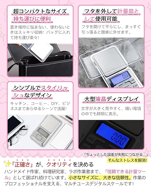 限定商品 ポケットデジタルスケール 0.01g-500g 精密 携帯タイプはかり 業務用 プロ用 デジタル計り 電子天秤 はかり 秤 高精密計量天秤 英語ボタン 日本語取扱説明書付 電池付属