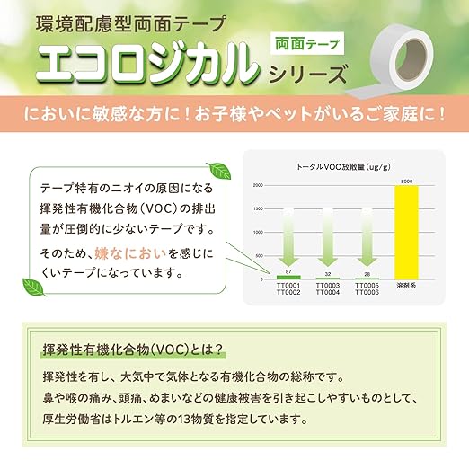 ニトムズ エコロジカル 強力両面テープ 粗面接着用 厚手 におい少ない 室内 環境配慮 エコ 吸音材 幅15mmX長さ8m 1巻入 TT0005