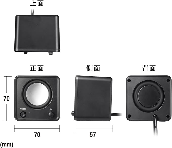 USB給電方式で、AC電源を必要としないのですっきりと配線でき、簡単に設置できます。3.5mm接続なのでモニターなど様々な機器に接続ができます。