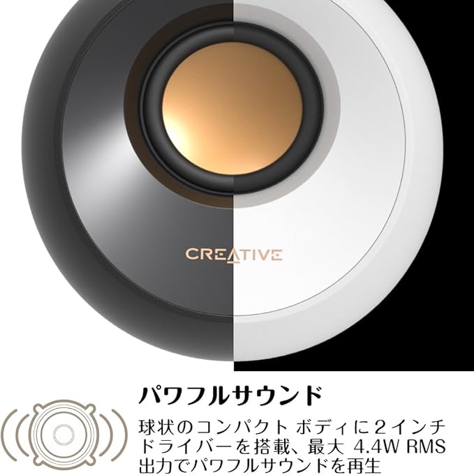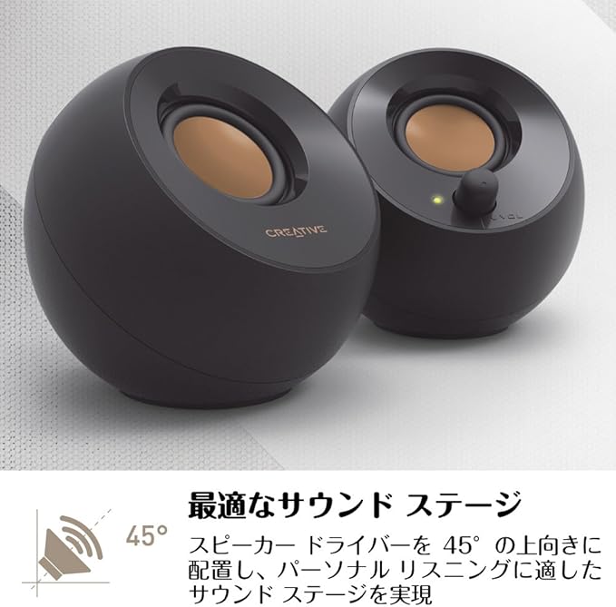 Creative Pebble ブラック【価格.com プロダクトアワード2024】音声入力 ピンプラグ/電源 USB 接続 / 45度 上向きスピーカー 低音パッシブラジエーター 搭載 ピーク出力8.8W/総合4.4W RMS PC スピーカー SP-PBL-BK