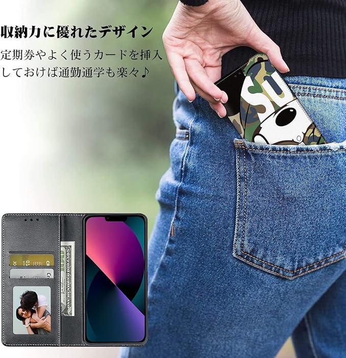 【3.機能満載の手帳型ケース】 このケースには、横置きスタンド機能が付いていますので、好みの角度で動画鑑賞や読書などを楽しむことができます! また、内部には3つのカード入れとフリーポケットがあるので、名刺や定期券の収納に最適です!便利さと実用性を兼ね備えた手帳型ケースです!✨✨