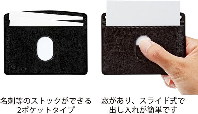 ●高級感のあるレザー調です。●名刺等ストックができる2ポケットタイプです。●スライド式で出し入れが簡単です。