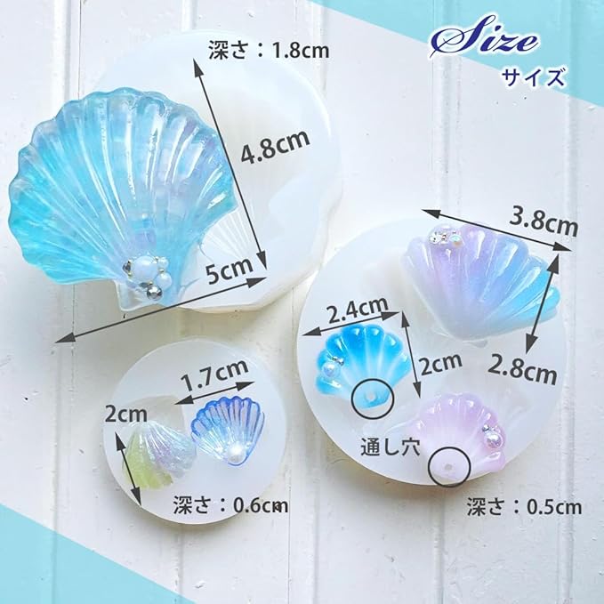 【Ever garden】 貝 3個セット 海 貝殻 レジン シリコンモールド ネックレス アクセサリー パーツ 作成 UVレジン オルゴナイト エポキシ樹脂 樹脂粘土 型 抜き型 キット 道具