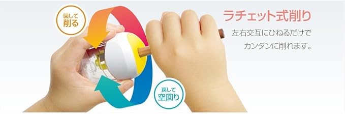ラチェット式削り:左右交互にひねれば、削る度に毎回握り直さずカンタンに削れます。