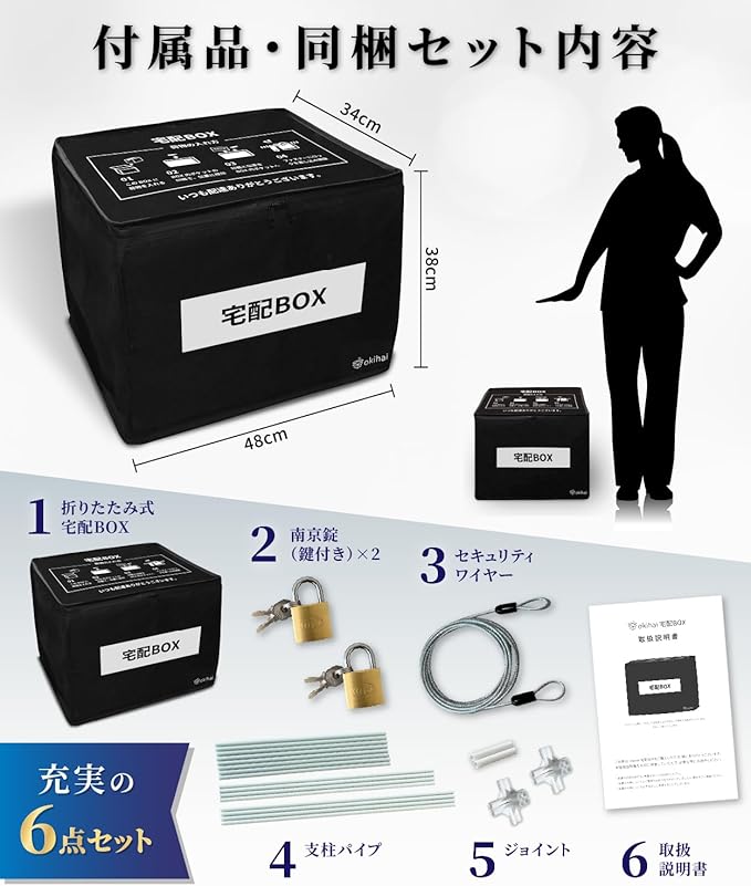 【国内防水試験クリア】okihai公式 宅配ボックス 黒色60L 大容量 組み立て3分簡単 収納可能 マンション 戸建て 防水防風耐水 盗難防止 ブラック 宅配BOX60L黒