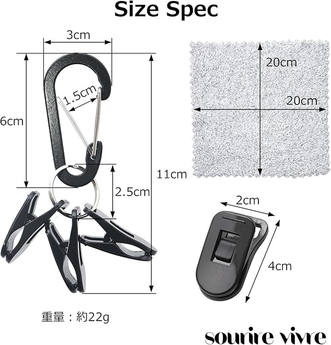 ✅カラビナは軽量で開閉のしやすいワイヤーゲートタイプを使用しているので装着時の負担も軽減します。