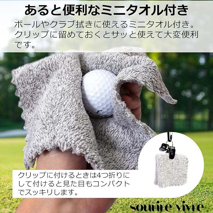 ✅ミニタオルも付いているのでボールやクラブを拭くために一緒にクリップに付けることもできます。