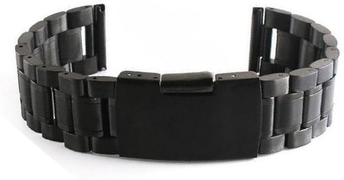 腕時計 ベルト ステンレス 3連 プッシュ式 直カン 22mm Dバックル 【 時計 バンド + バネ棒 + バネ棒外し】 3点 セット 黒 ブラック 22