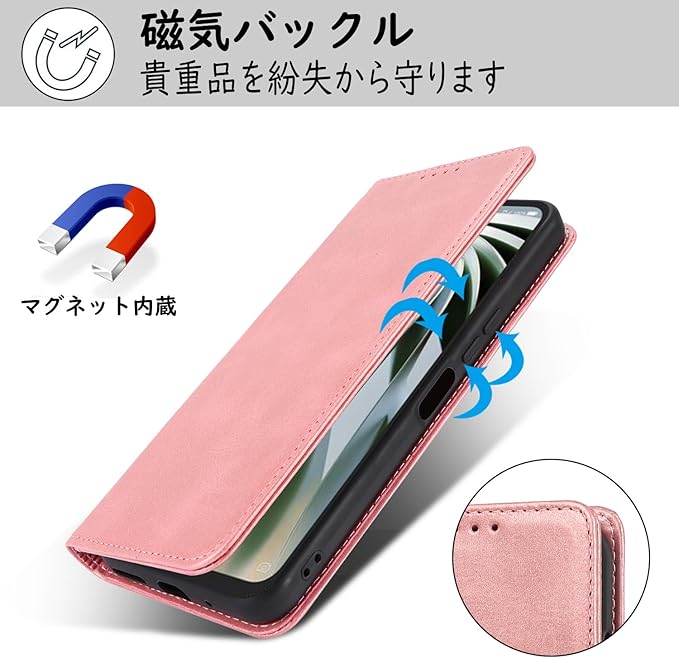 【Hamany】 libero 5g iv ケース 手帳型 ZTE libero5givスマホケース リベロ5g4 A302ZT 携帯ケース 耐衝撃 全面保護 耐摩擦 内蔵マグネット スタンド機能 ストラップホール付き-ファッションローズゴールド