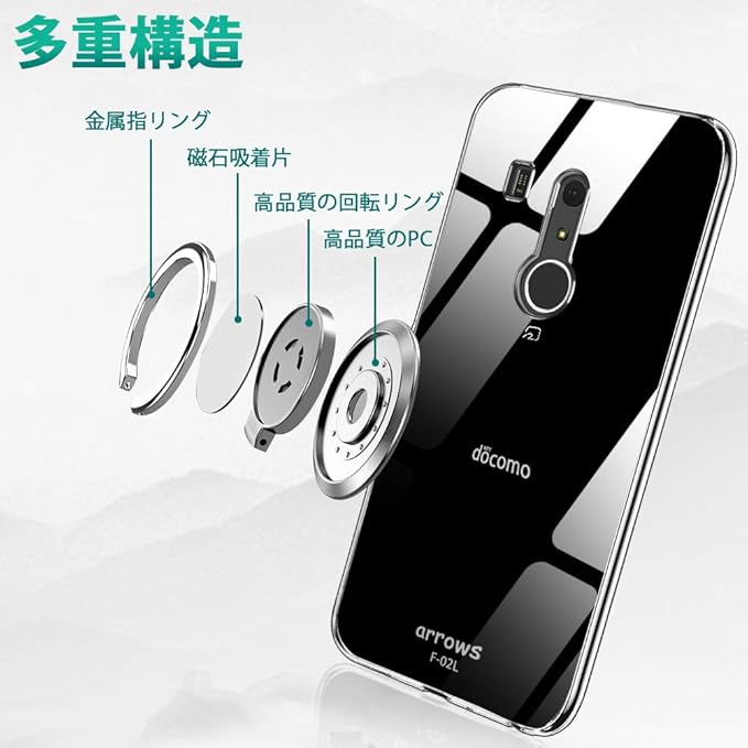 Arrows 5G F-51A ケース クリア リング付き TPU 耐衝撃 シリコン 薄型 カバー 指紋防止 米軍MIL規格 スタンド機能 車載対応ホルダー対応 スクラブ 磁気 カーマウントホルダー 薄くて軽い 擦り傷防止ケース スマホケース 着脱しやC54-04